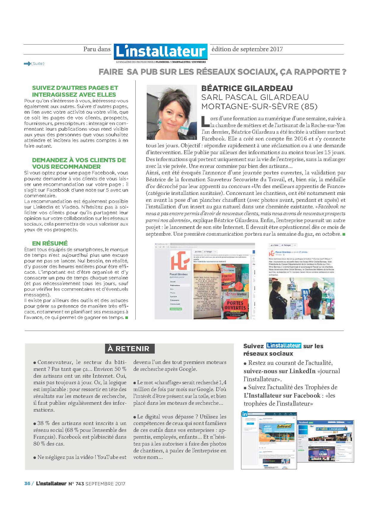 Parution dans le magazine " L'installateur"
